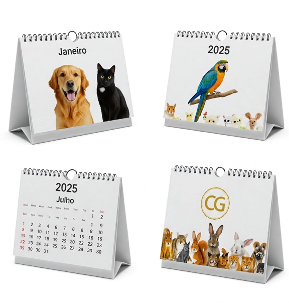 Além de úteis, os calendários são uma ótima forma de manter sua marca presente o ano inteiro. Produzimos sob medida, com personalização total.